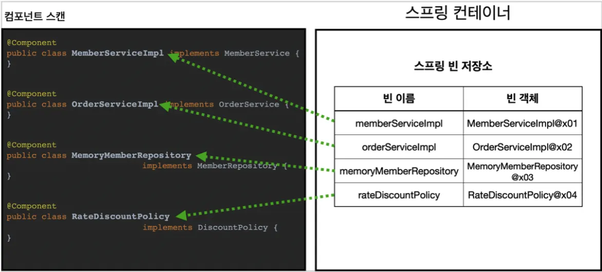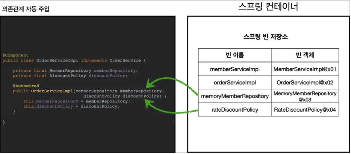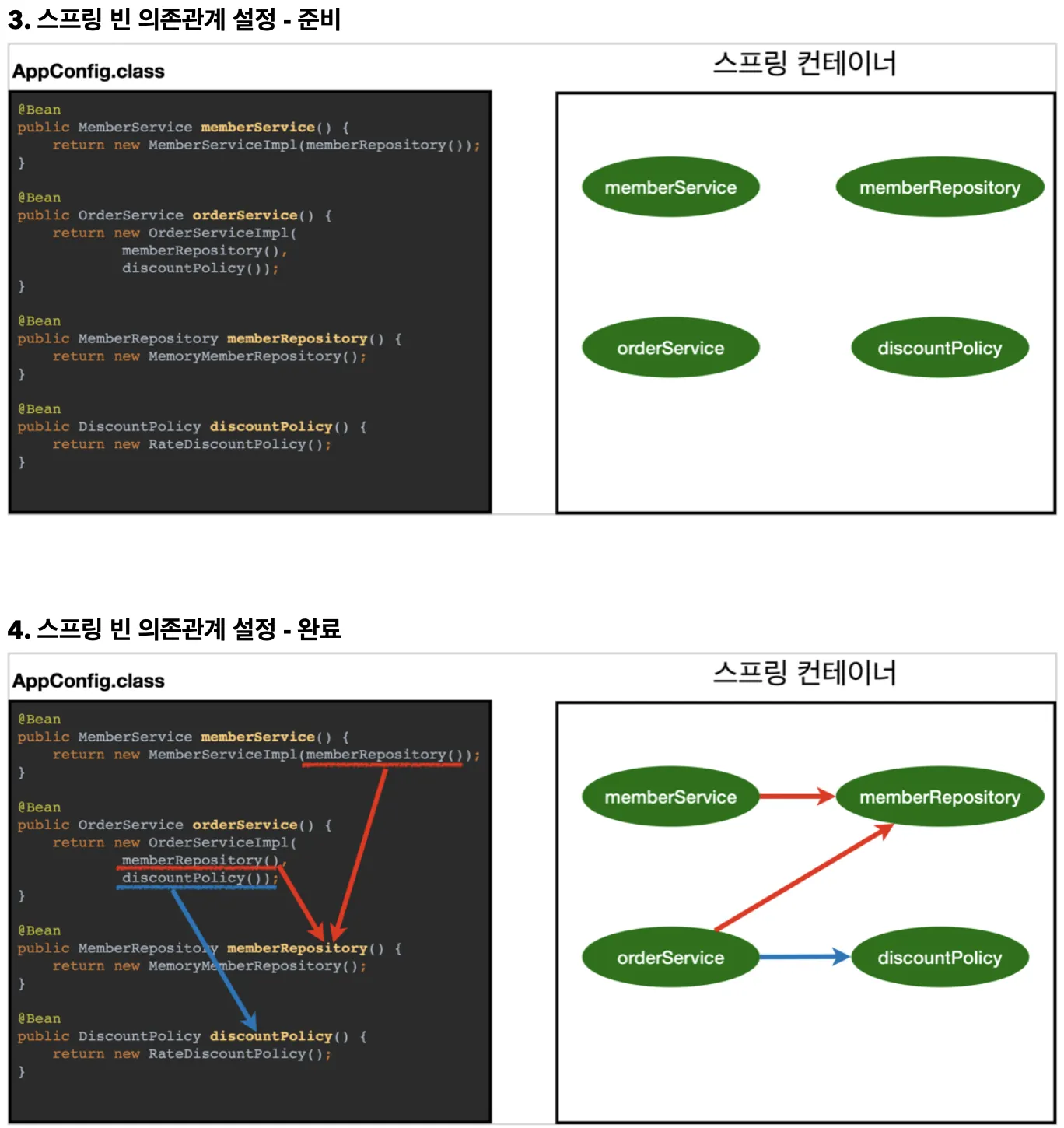 AppConfig을 통해 구현 객체를 대신 생성하고 의존관계를 주입해줬다.