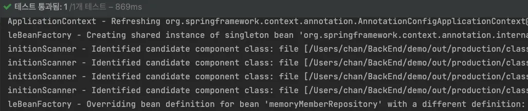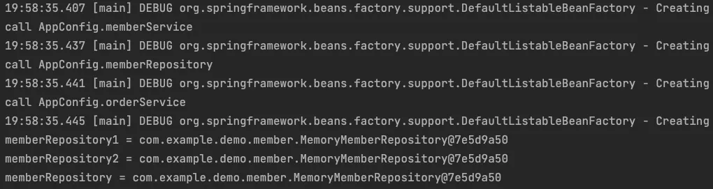 이제 MemberApp(클라이언트 코드) 에서는 AppConfig을 통해 DI(의존성주입)를 받기만 하면 될 뿐이다.