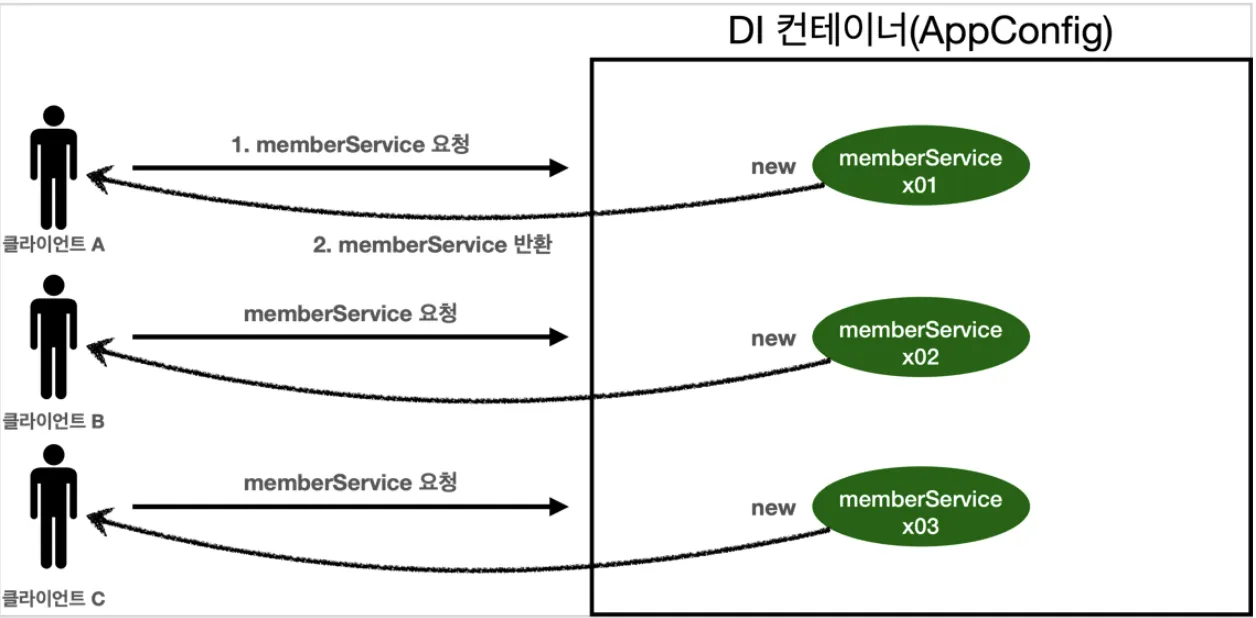 clientBean에 프로토타입 빈을 주입 받는게 아니라 applicationContext를 주입 받은 후 프로토타입 빈을 사용할 때마다 스프링 컨테이너에게 요청해 각각 다른 인스턴스의 프로토타입 빈을 사용할 순 있다.