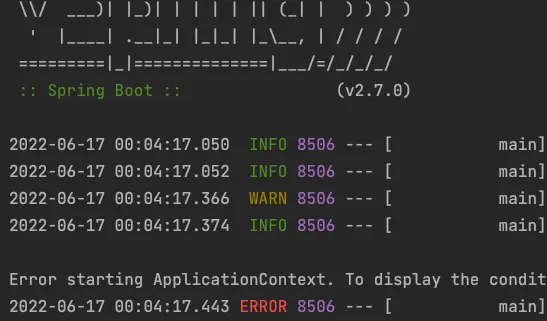 애플리케이션을 실행할 땐 요청이 없지만 컨테이너는 주입 요청을 받았기 때문에 에러가 발생하는 것이다.