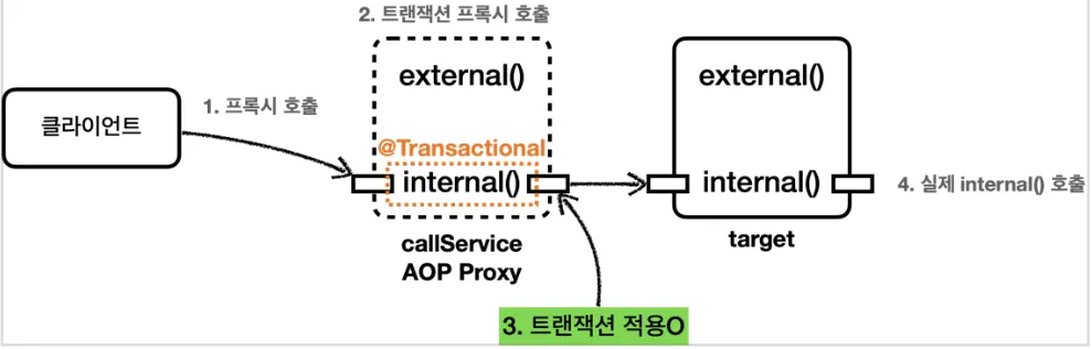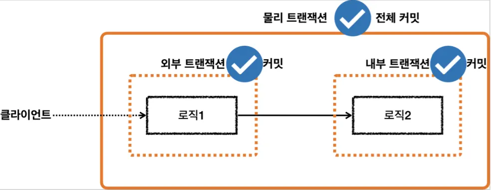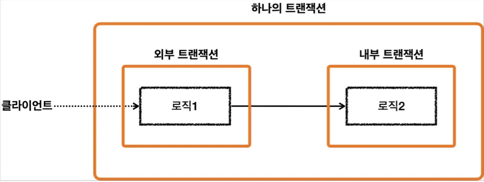 처음 시작된 트랜잭션은 외부 트랜잭션 이후 시작된 트랜잭션은 내부 트랜잭션이다.