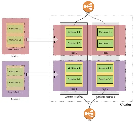 Task가 배포되는 Container Instance들은 논리적인 그룹으로 묶이게 되는데 이 단위를 Cluster라고 부른다