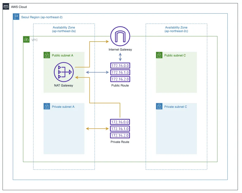 Public Subnet : 인터넷이 목적지인 경우 인터넷 게이트웨이로.. (IGW를 가진 서브넷)
