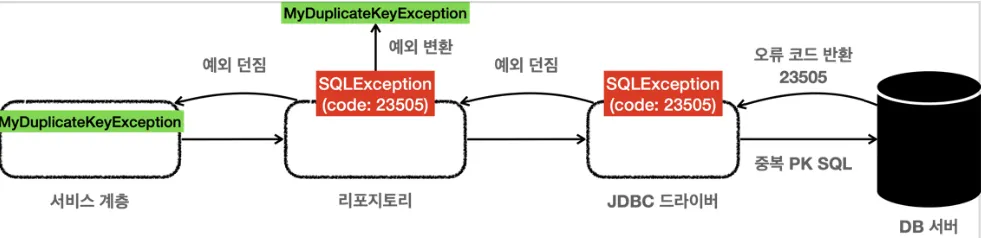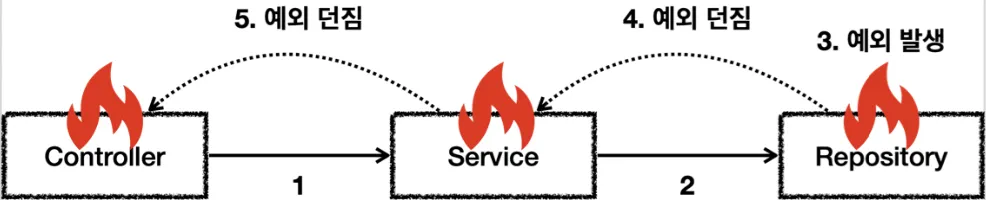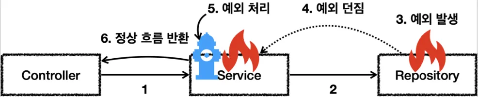 Service에선 해당 예외에 대한 처리 로직을 짜둔다.