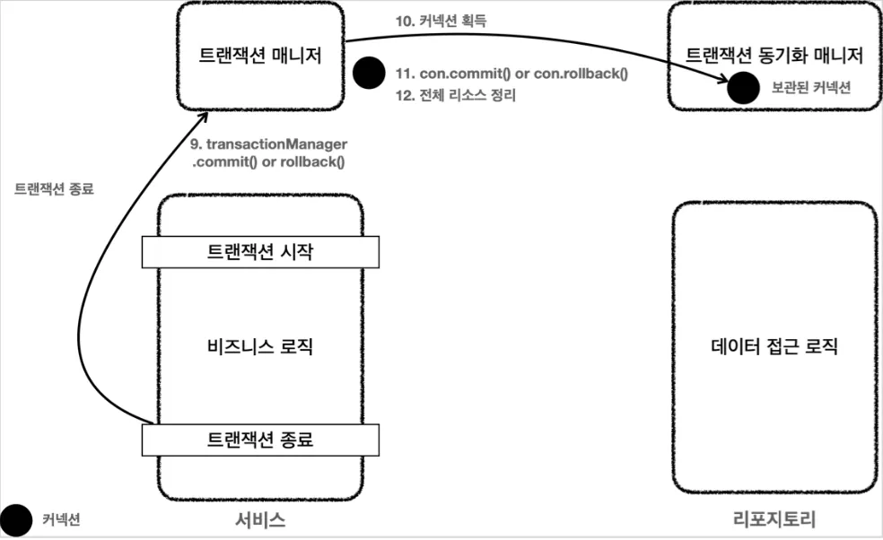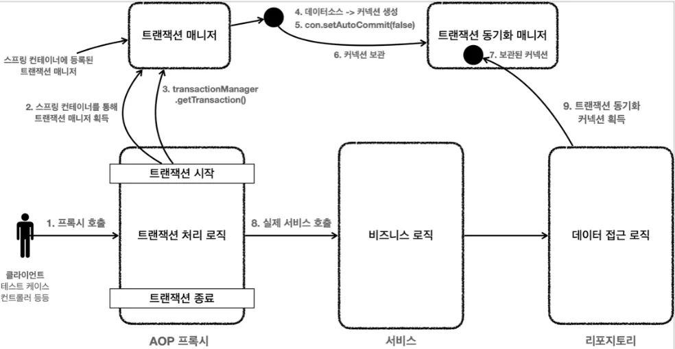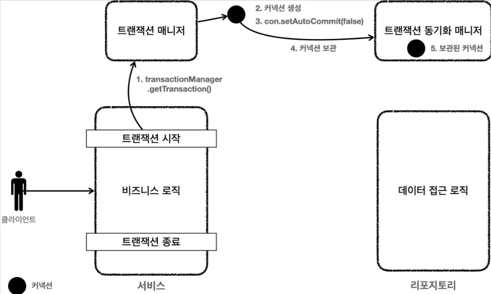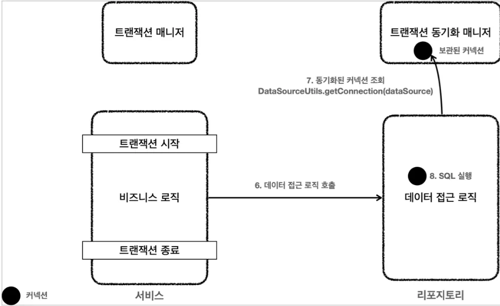뿐만 아니라 트랜잭션을 위한 커넥션 동기화와 커넥션 종료 그리고 스프링 예외 변환기도 자동으로 실행한다.