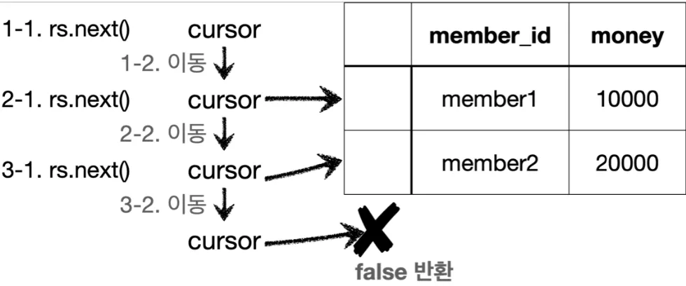 SQL 전달 : 애플리케이션 서버는 DB가 이해할 수 있는 SQL을 연결된 커넥션을 통해 DB에 전달한다.