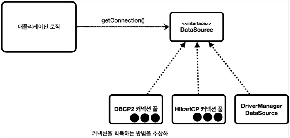 JDBC는 java.sql.Connection 표준 커넥션 인터페이스를 정의한다.