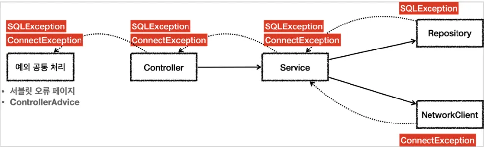 복구 불가능한 예외인 경우에도 어쩔 수 없이 throws를 통해 던져야한다.