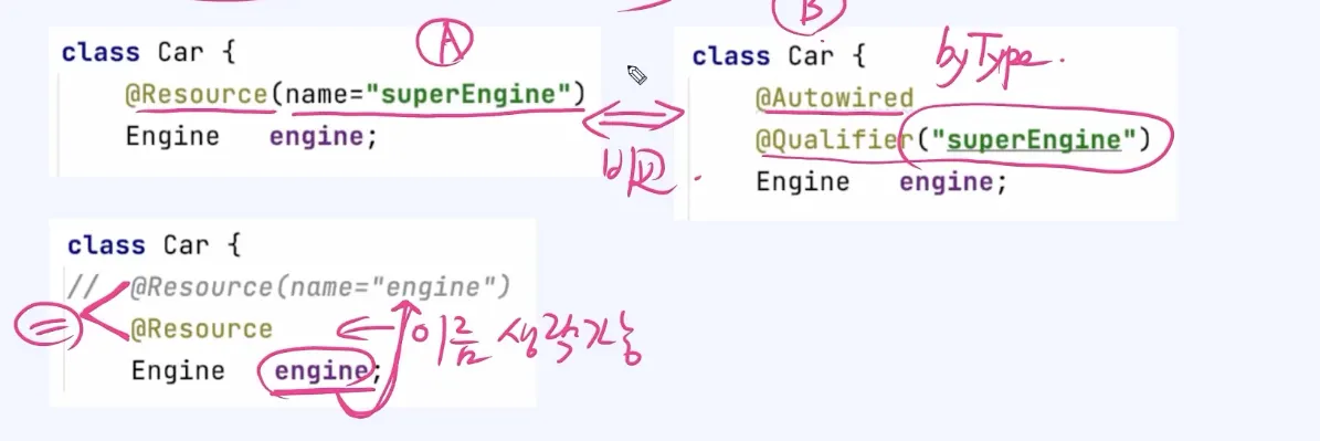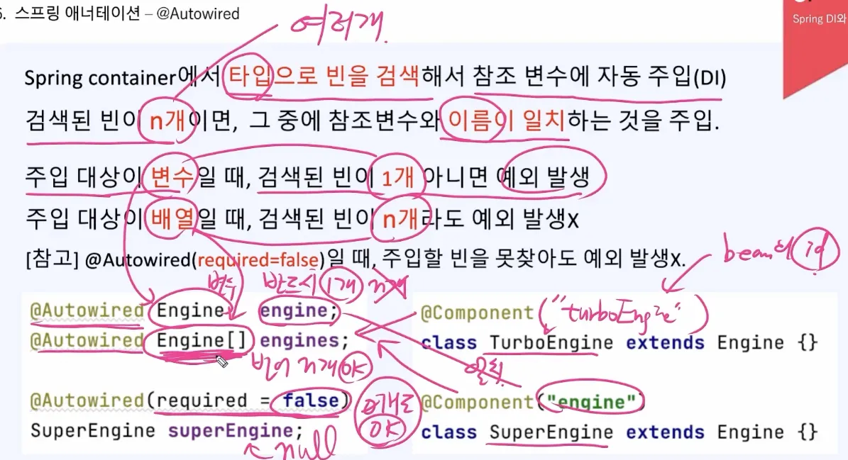 어노테이션을 붙이면 빈으로 등록된 객체 중 맞는걸 자동으로 연결해준다