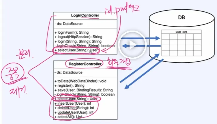 DAO가 없다면 로그인과 회원가입 Controller에서처럼 selectUser와 같은 중복이 발생한다