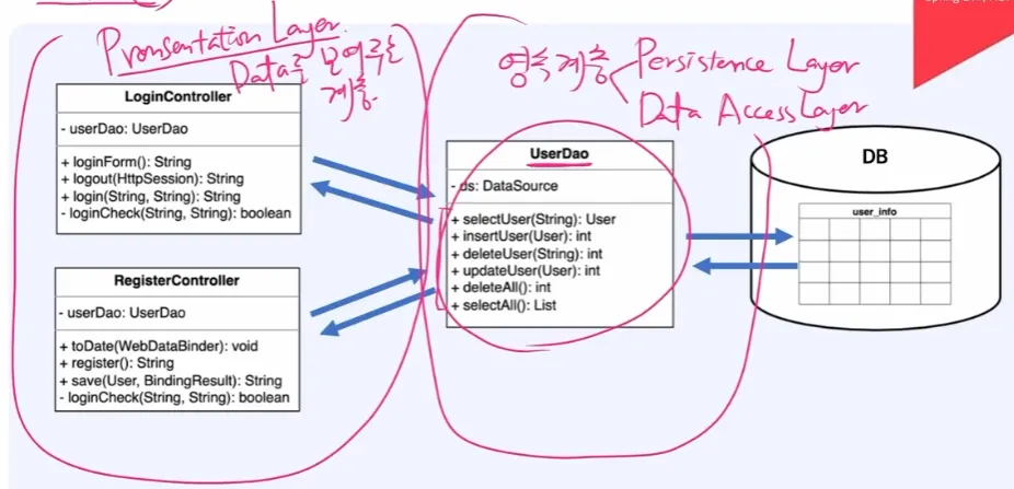 그렇기 때문에 데이터에 접근하는 계층인 영속계층(Persistence Layer, Data Access Layer)과