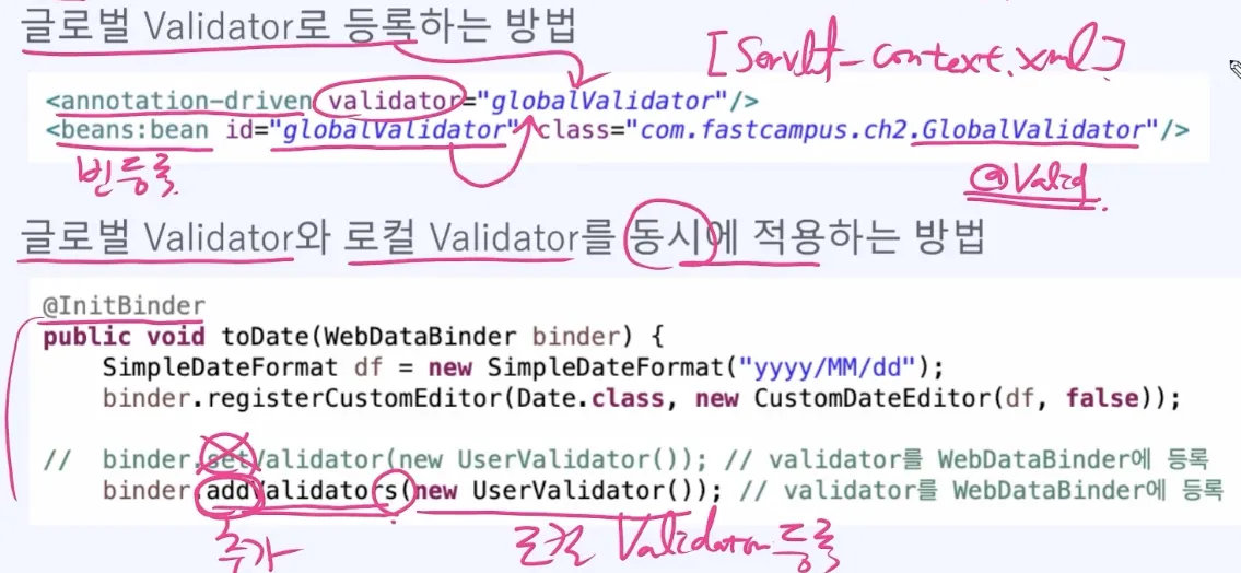 글로벌 Validator : servlet-context.xml에 빈 등록하고 @Valid 사용