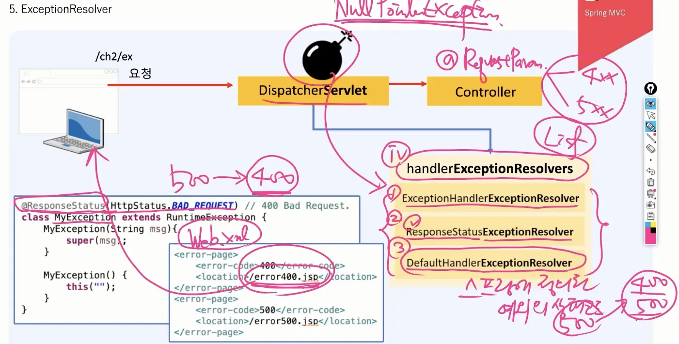 @ExceptionHandler(Exception.class) ← 처리할 예외 적기