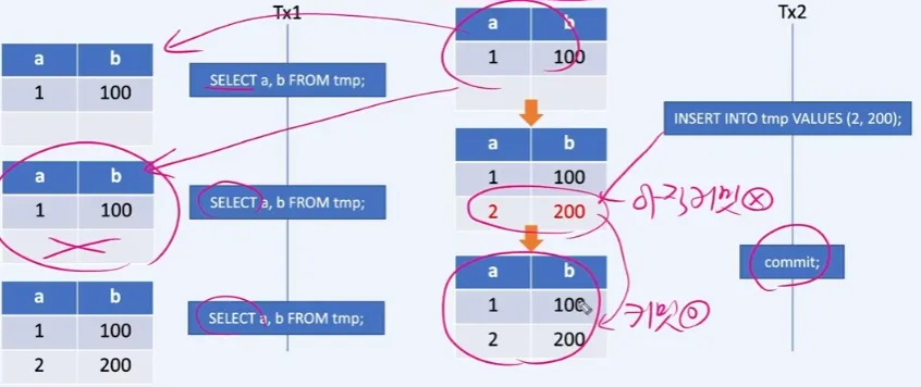 READ COMMITED (Phantom READ) : 커밋된 데이터만 읽기 가능