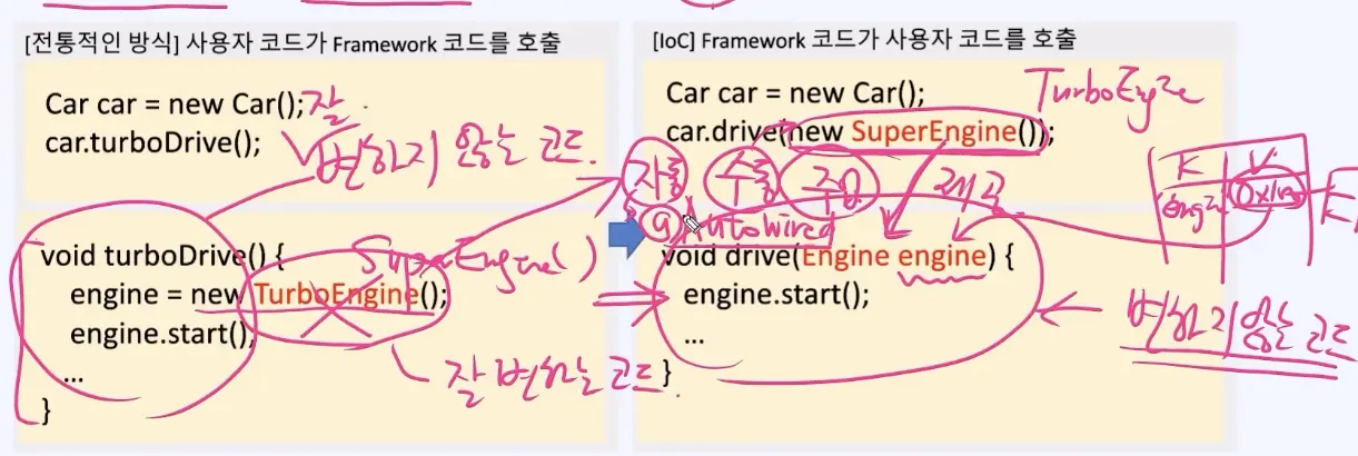 수동 주입 : new SuperEngine()과 같이 직접 지정해주는 것