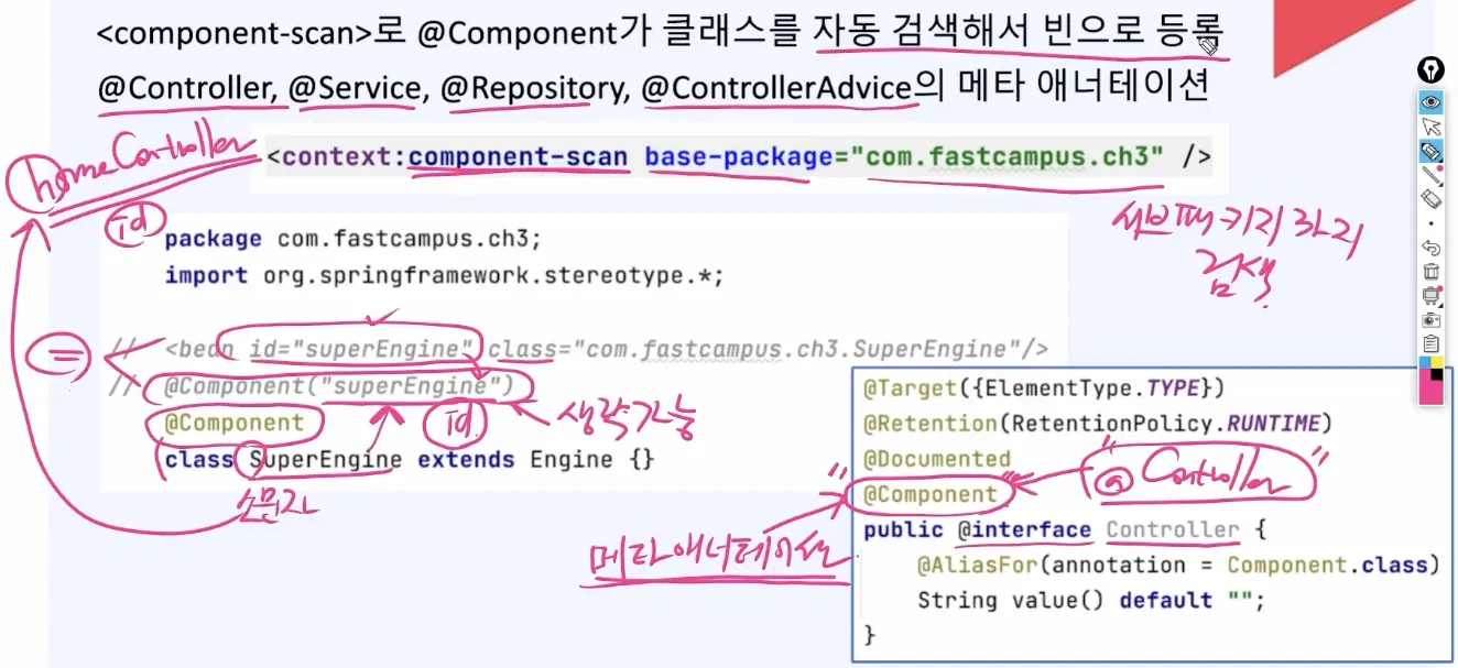 그렇기에 <component-scan>으로 스캔이 가능하다.