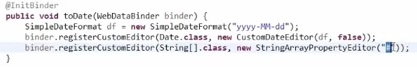 ex) binder.registerCustomEditor(Date.class, new CustomDateEditor(df, false));