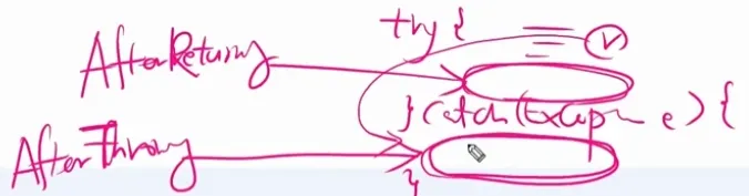 after returning (@AfterReturning) : 예외가 발생하지 않았을 때 실행되는 부가 기능 (try 블럭)