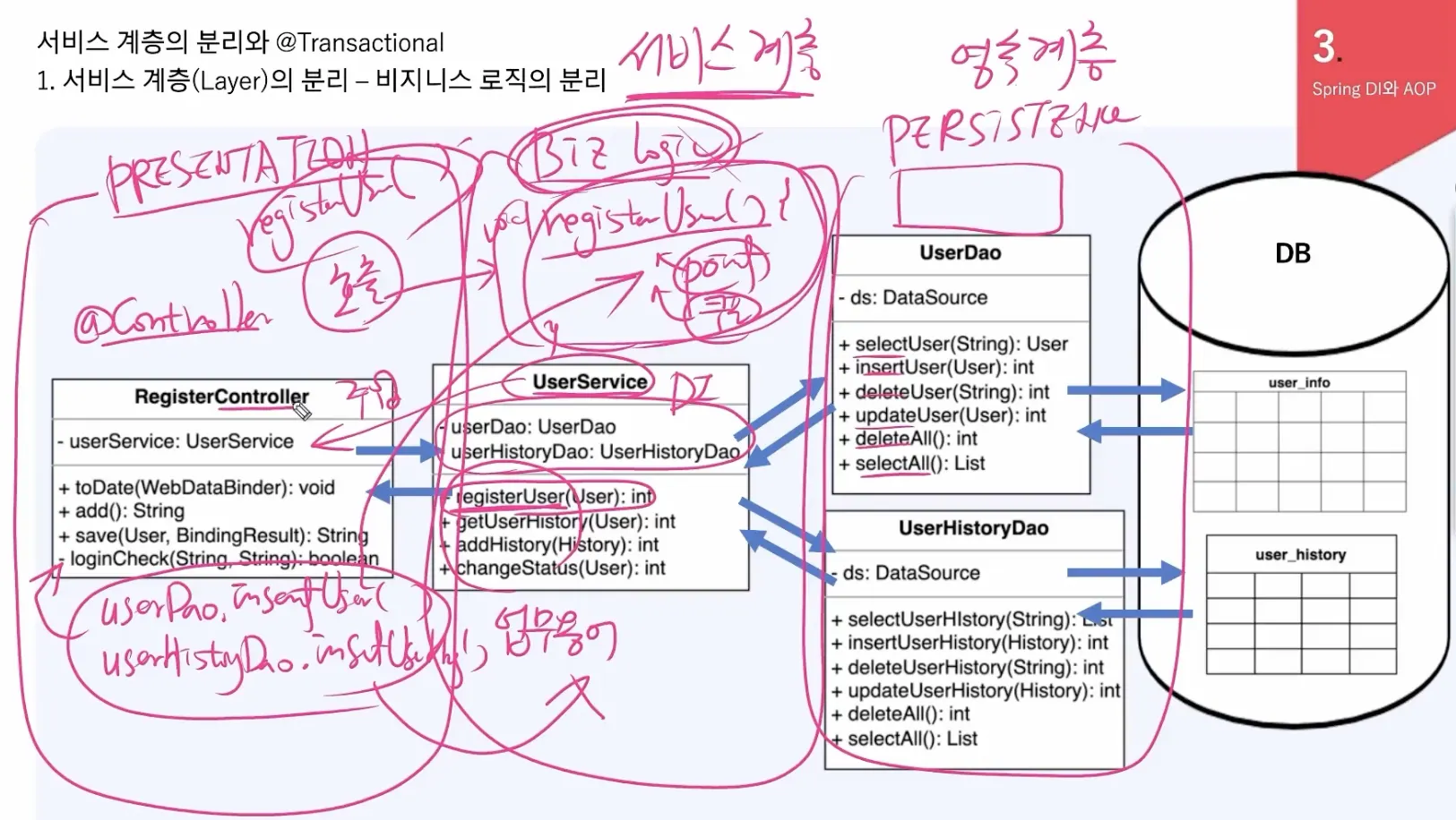 registerUser() 에는 UserDao의 insertUser() + UserHistoryDao의 insertUserHistory()의 Tx가 있다