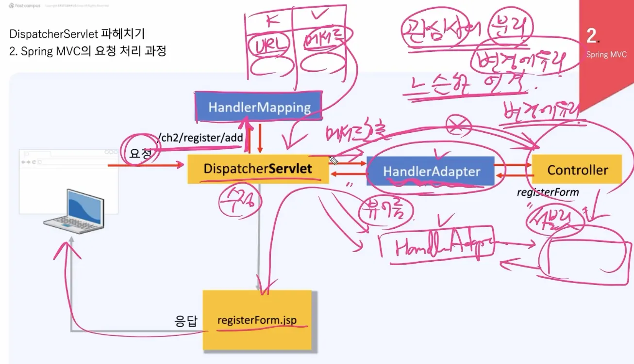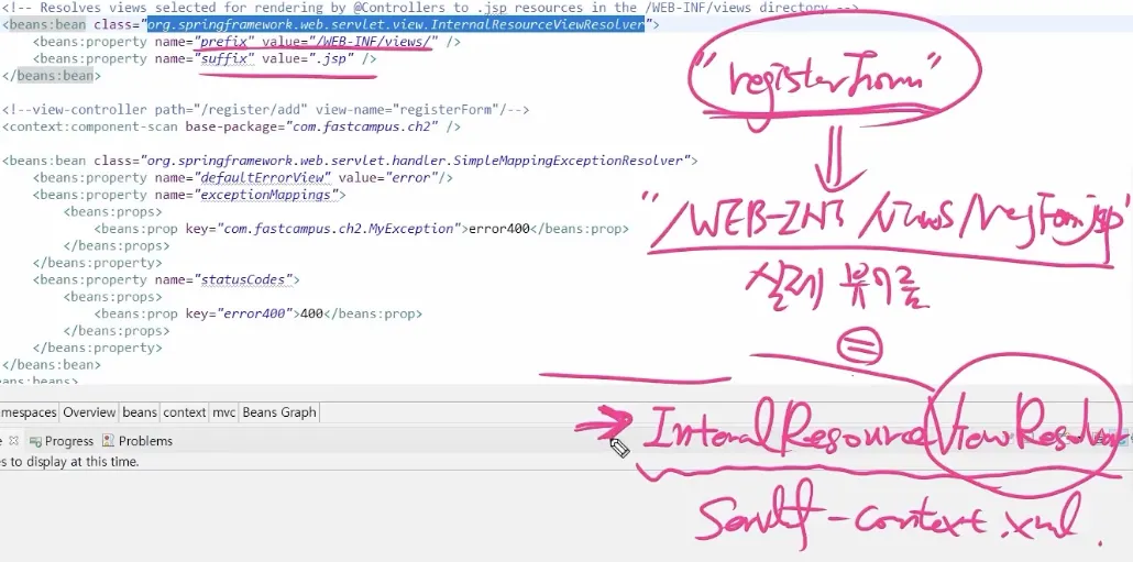 registerForm이라는 view 이름을 주면 prefix, suffix 접두사 접미사를 붙여서 실제 뷰 이름을 반환해준다 (/WEB-INF/views/registerForm.jsp)