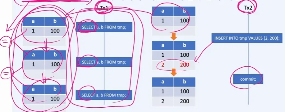 REPEATABLE READ : Tx이 시작된 이후 변경은 무시됨 (Default)