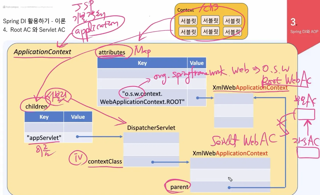ServletWebAC : DS의 contextClass 변수에 생성된 AC로 자신의 parent 변수에 RootAC를 갖는다